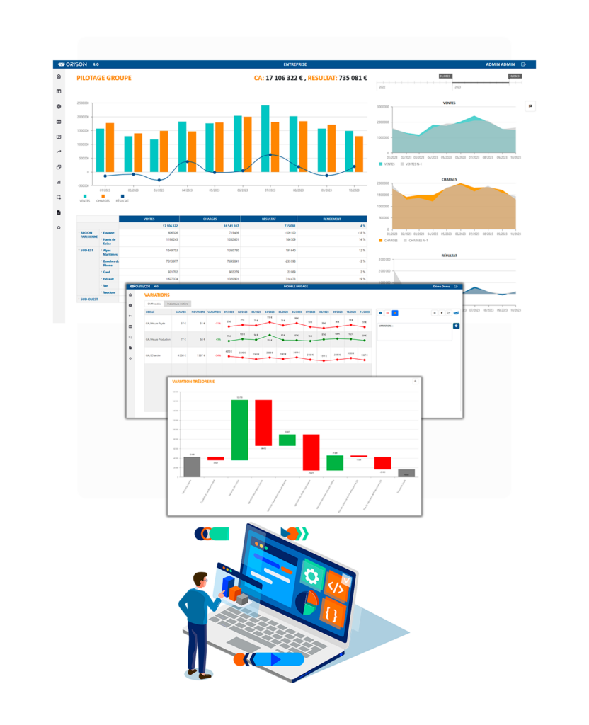 TABLEAUX DE BORD INTERACTIFS : suivez la performance de votre entreprise grâce à des tableaux de bord personnalisés.